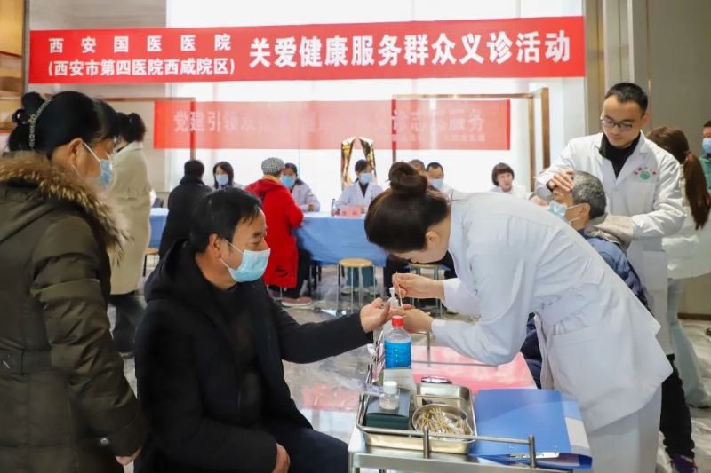 12月27日上午,西安国医医院(西安市第四医院西咸院区)联合西安市第四医院、高桥卫生院共同开展“关爱健康服务群众”义诊活动,为周边居民送上健康问诊大礼包。