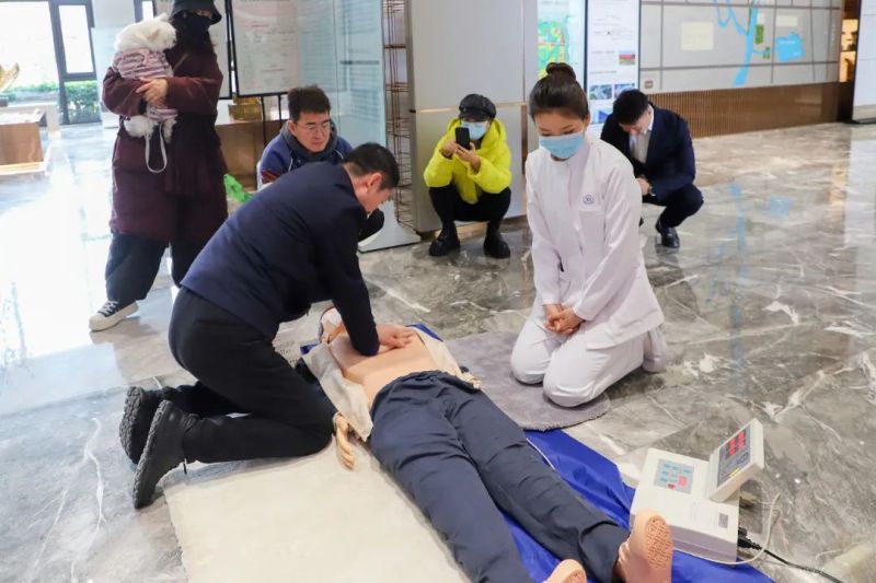 现场还设置了急救演练区,医护人员运用人形教具开展心肺复苏、海姆立克急救演练培训,前来就诊的群众在医护人员手把手地指导下纷纷上前操作学习。在医院门诊楼,工作人员为前来参观的群众介绍医院建设情况,开展健康宣教活动,发放健康宣传彩页,提升群众的健康意识,引导群众科学及时就医,此次义诊共提供各类问诊服务500余人次。