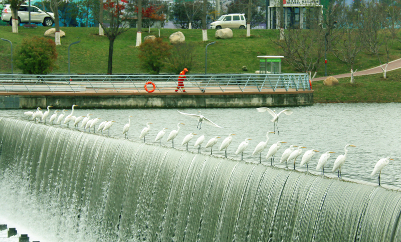 11月24日,冬日的暖阳洒在沣河上,不时有水鸟掠过。