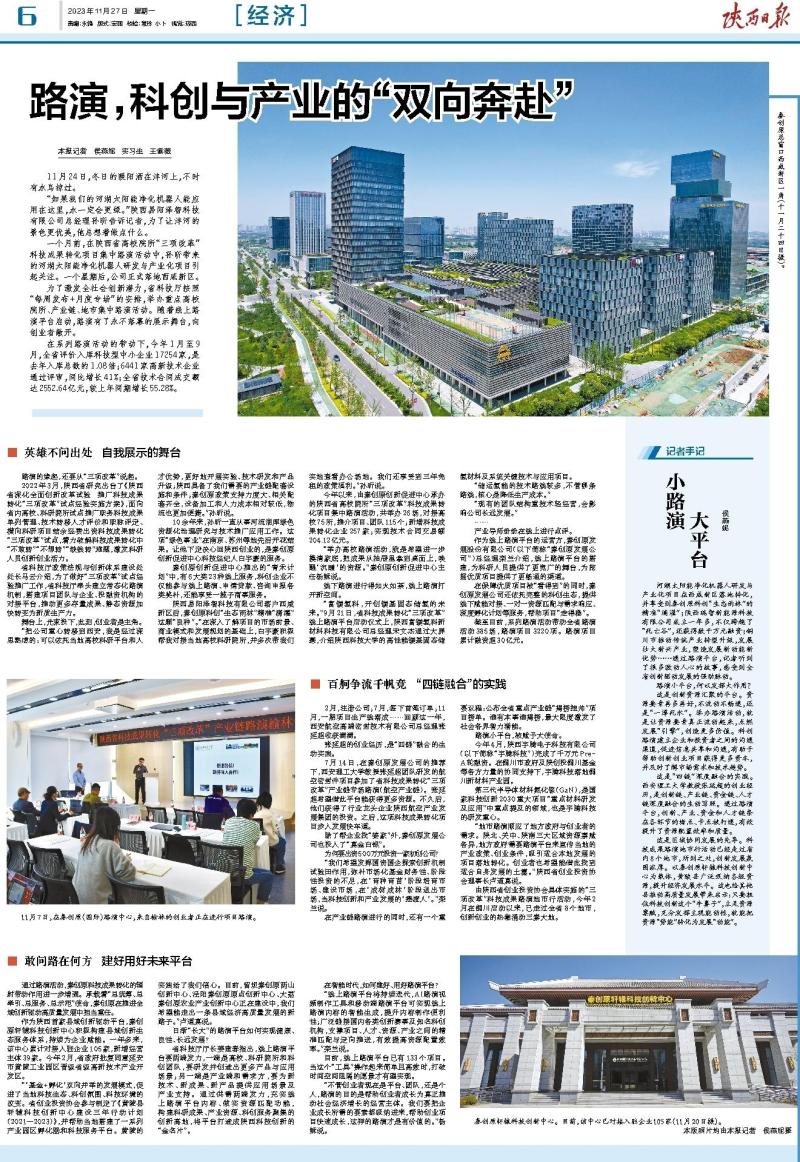 陕西日报刊发报道《路演,科创与产业的“双向奔赴”》