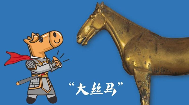 现藏于茂陵博物馆的西汉鎏金铜马,是一件拥有2000多年历史的国宝级文物。西咸新区秦汉新城新丝路数字文化科技有限公司抓取文物特征并结合其背后的故事,将其设计为战马数字卡通形象——“大丝马”。“其命名取用了丝绸之路的‘丝’字,寓意‘大丝马’是‘一带一路’上的汉文化传播者。”企业负责人田琳表示。