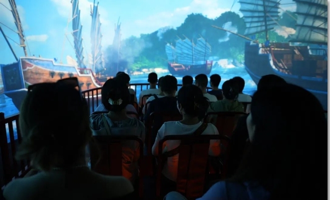 在瑰丽波斯街区的破浪影院,大家跟其他游客一样发出阵阵尖叫。“体验感太真实了!特别是倾斜和摇摆感,就像真的在海上航行一样。”