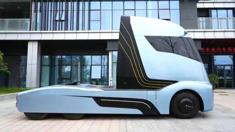 子弹头式“前脸”、流线型车身、配备厨卫设施的超宽驾驶室……在位于西咸新区泾河新城的陕汽控股旗下德创未来汽车科技有限公司(以下简称“德创未来”)门口,一辆重卡牵引车格外吸引眼球。