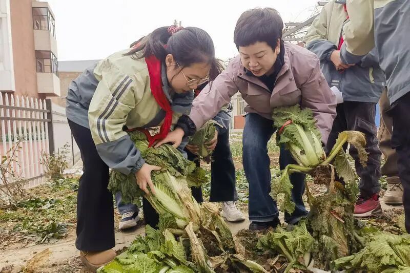 而收获的蔬菜用途多样,除了奖励给学生带回家、送入学校食堂供师生品尝,还会邀请家长进校园,用孩子们亲手种植的蔬菜包饺子、吃火锅,以劳动成果串联家校温情,让孩子们在分享中懂得珍惜。