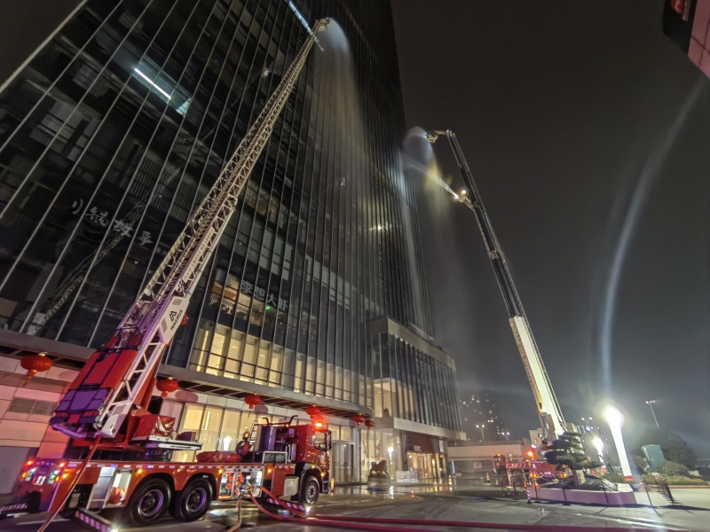 5日夜间,陕西西咸消防救援支队在国润城丝路金融中心超高层开展灭火救援综合实战演练,全面拉开了西咸新区消防救援队伍贯彻落实消防安全集中除患攻坚大整治“大演练”工作序幕。