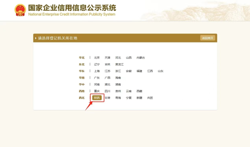 第二步:点击“陕西”。
