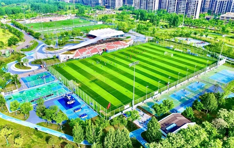 项目占地143亩,包含2块11人制天然锚固草专业足球场和1块8人制、2块5人制人造草专业足球场,同时配备了篮球、乒乓球、羽毛球等群众健身活动场地,是具备国际水准的专业竞技足球训练中心、青少年足球培训中心、区域社区全民健身及体育运动健康中心,能够满足国内标准赛事、国际标准训练及群众专业足球训练和大众体育活动的需求。五一假期期间,国家级青少年女足赛事在沣东足球公园落幕,公园自2023年3月落成开园以来,已举办比赛千余场。