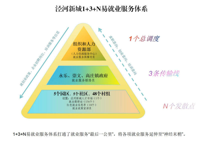 据悉,泾河新城“1+3+N”易就业服务机制以“企业用工有保障,群众就业促增收”为目标,设立“1”个总调度(以泾河新城组织和人力资源部为立体化就业服务架构的总中枢,传输人力资源供需信息),串联“3”条传输线(通过赋能永乐、崇文、高庄三镇基层社会事务管理员,加速新城—各镇—村组的信息传递速度),激活“N”个发散点(充分利用村社区、园区、商业体等网格管理点延伸就业服务到企业和群众端),实现区域就业服务全覆盖。