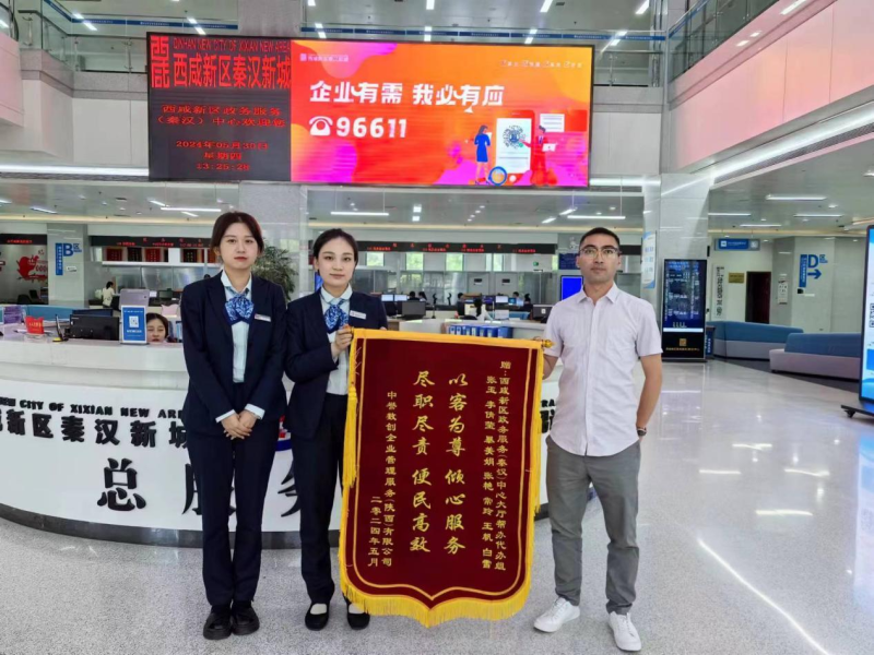 致谢不是终点,更是一个全新的起点。5月30日下午,西咸新区政务服务(秦汉)中心的帮办代办组收获来自中誉数创朱先生的锦旗,锦旗上“以客为尊,倾心服务,尽职尽责,便民高效”是对工作人员的高度认可。