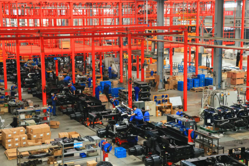 50公里外,三一智能制造产业园内则是忙着生产。“灯塔工厂”内,生产线已全面运转,工人们各自忙碌,机器人挥动“手臂”作业,自动导向车来回穿梭运送物料,一辆辆矿用宽体车组装下线……