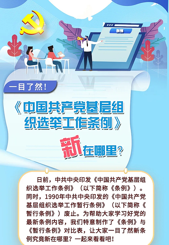 一目了然!《中国共产党基层组织选举工作条例》新在哪里?