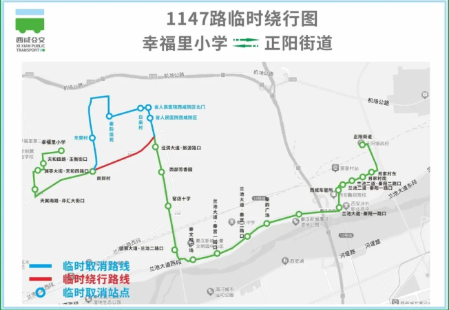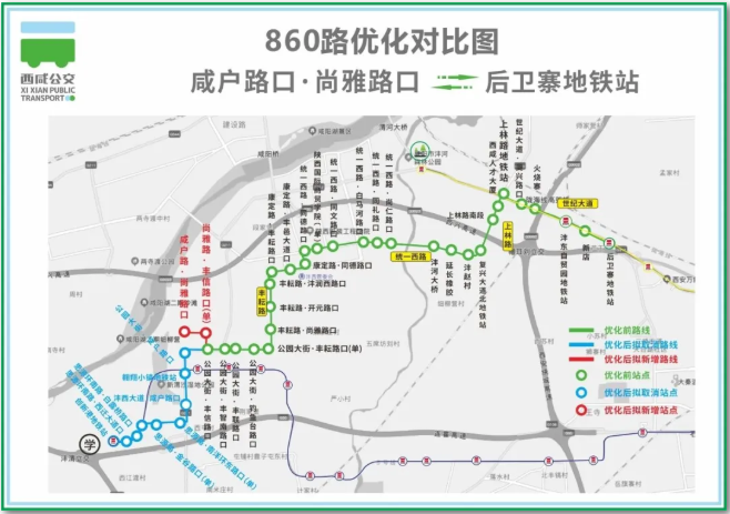调整后:原线路由“白马河路地铁站”始发,“白马河路地铁站”至“沣河森林公园地铁站”路段不再经停。