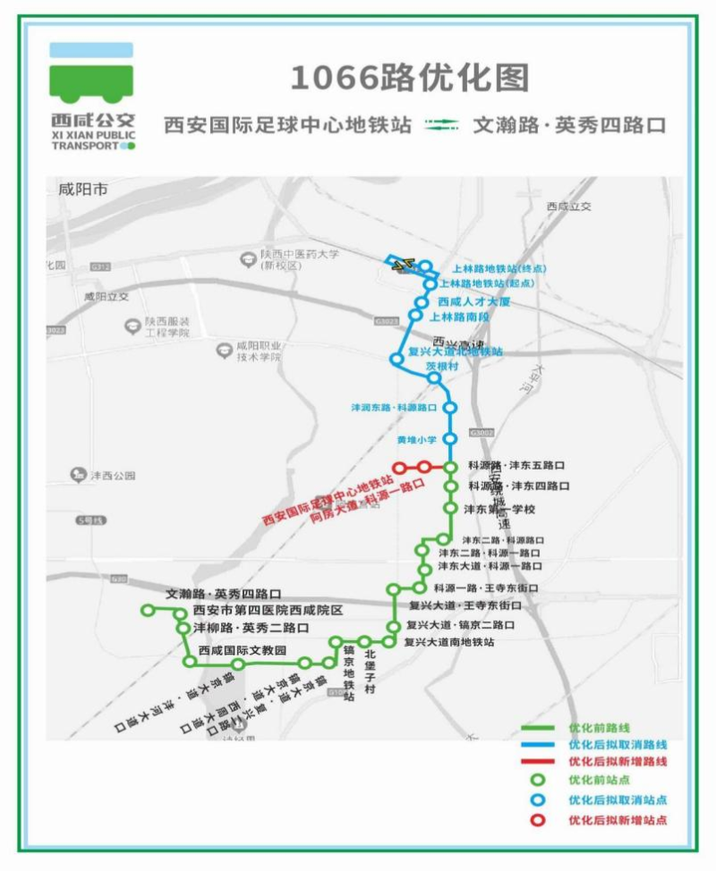 调整后原线路“上林路地铁站--科源路·沣东五路”不再途经停靠。