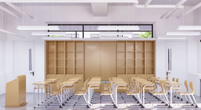 学校设计将庭院概念植入其中,以“一带,两轴”为基础结构形成灵活空间布局,让内部各功能既自成天地又院院相通,形成独具特色的校园空间。