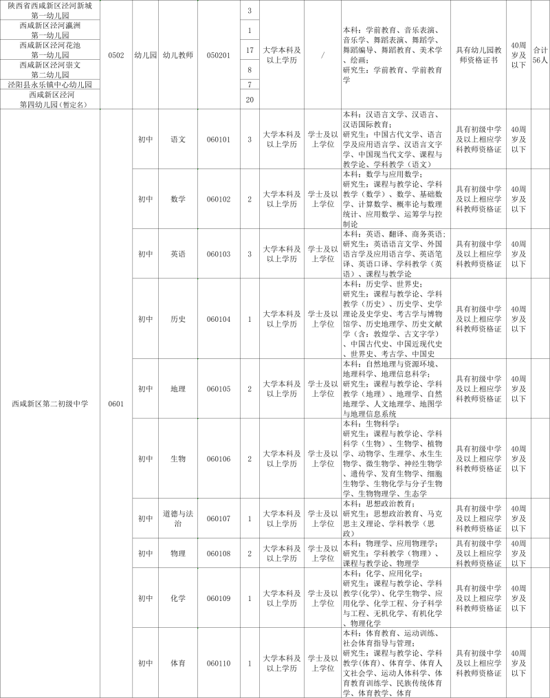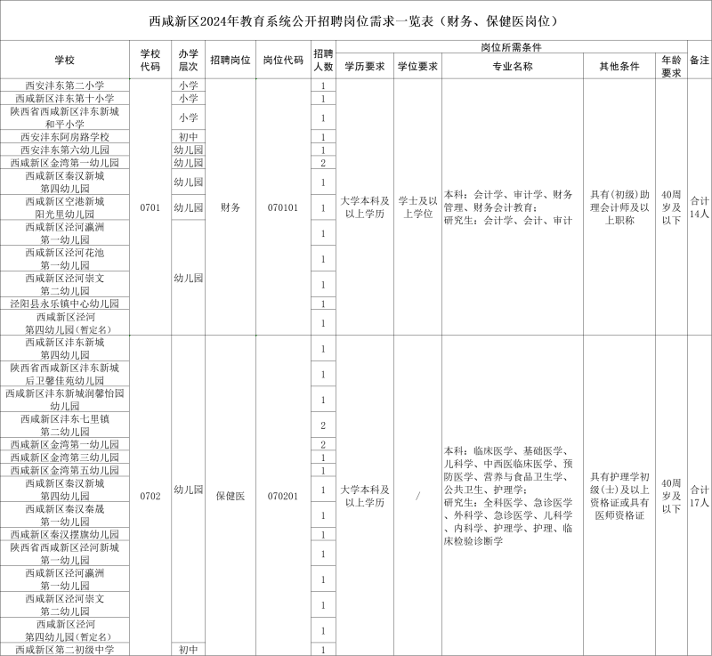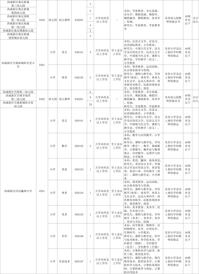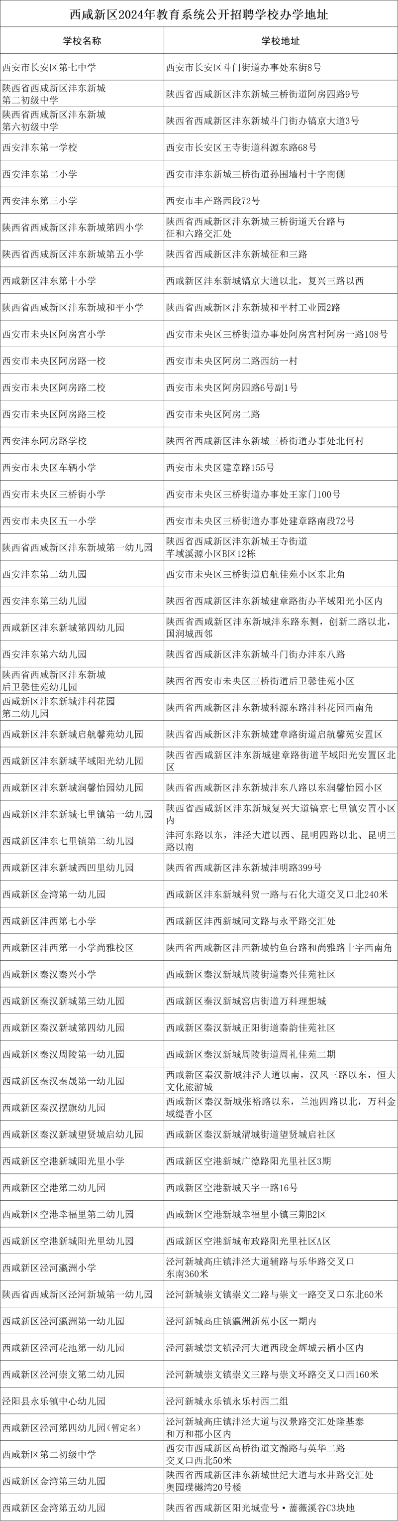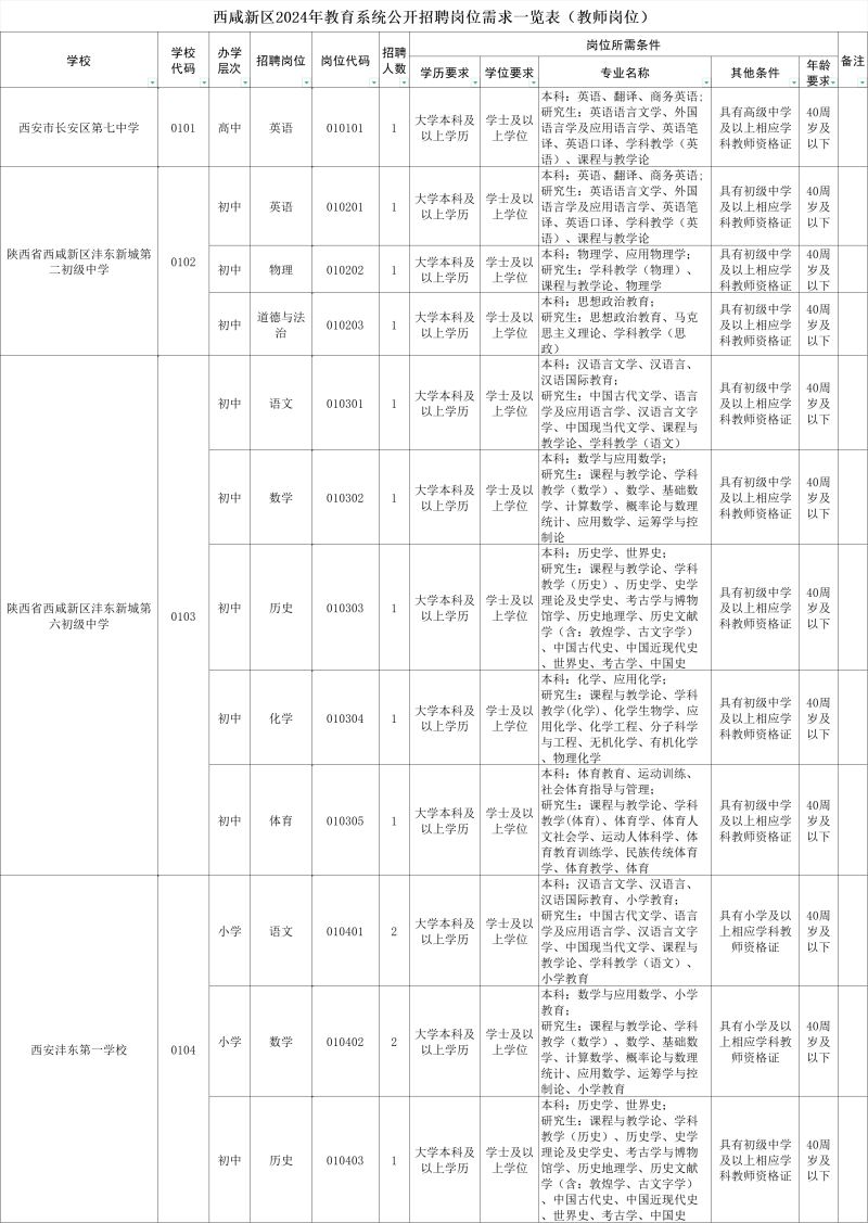 西咸新区2024年教育系统公开招聘岗位需求一览表