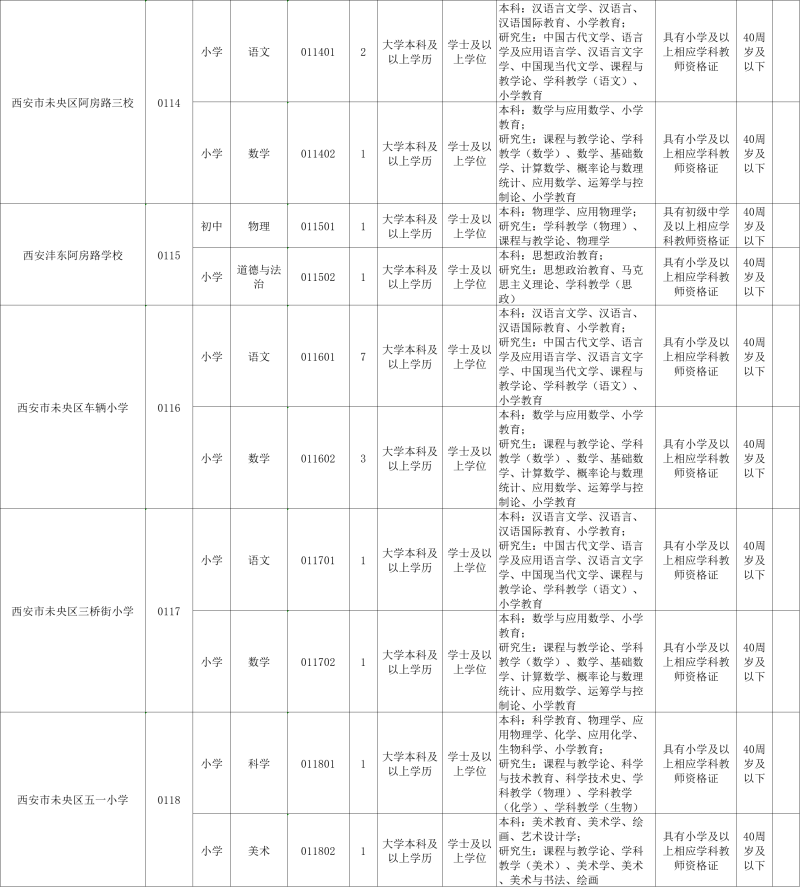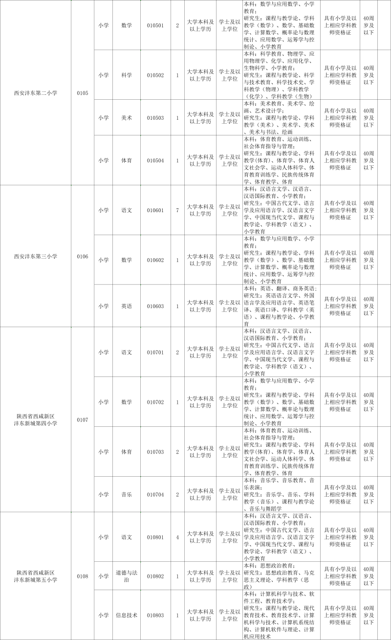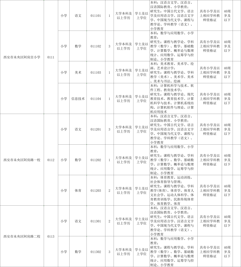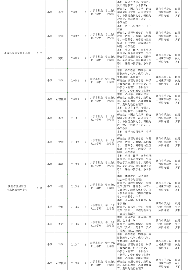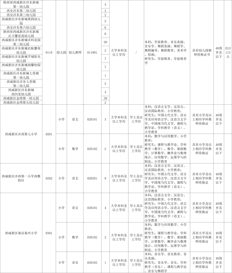 西咸新区2024年教育系统公开招聘岗位需求一览表
