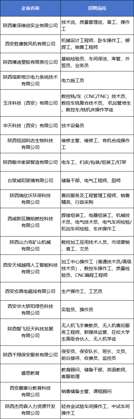 招聘岗位及企业名单