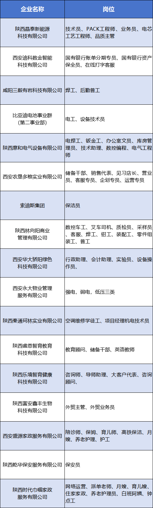 “西咸新区金秋招聘季”现代服务类专场招聘会岗位及企业名单