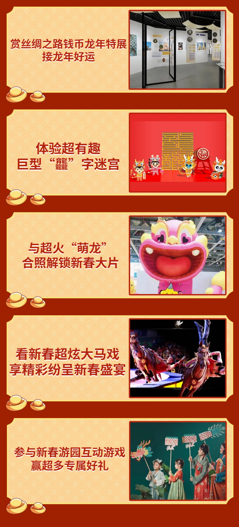 新春期间,丝路欢乐世界众多年味氛围浓厚的活动精彩来袭,超多惊喜现场随机降落,快@你身边的“小龙人”加入这场奇趣欢乐的新春潮玩派对。