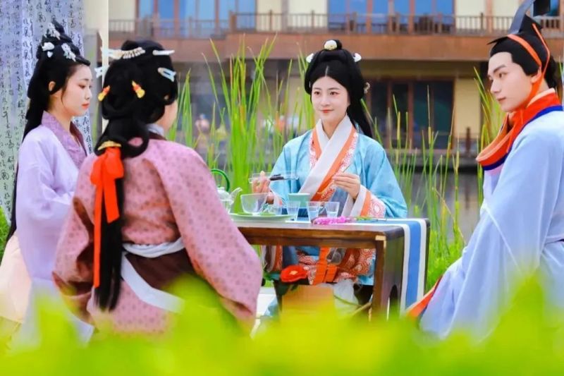 2、汉服与茶文化更适配哦,可以让照片更出圈。