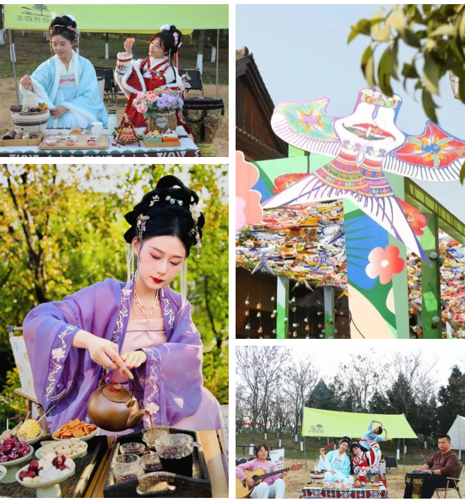诗经里小镇坐落于浪漫的沣河河畔,这里多处茶馆引用《诗经》典故造景,茶香怡人,环境雅致。小镇还准备了《风雅诗颂》、古风舞蹈等真人实景演出表演,实景再现了《诗经》从采集到传承的过程。为了让大家能够更好地体验国风古韵,小镇今年策划制作了“52个周末”系列主题活动,带你玩转每个精彩周末。