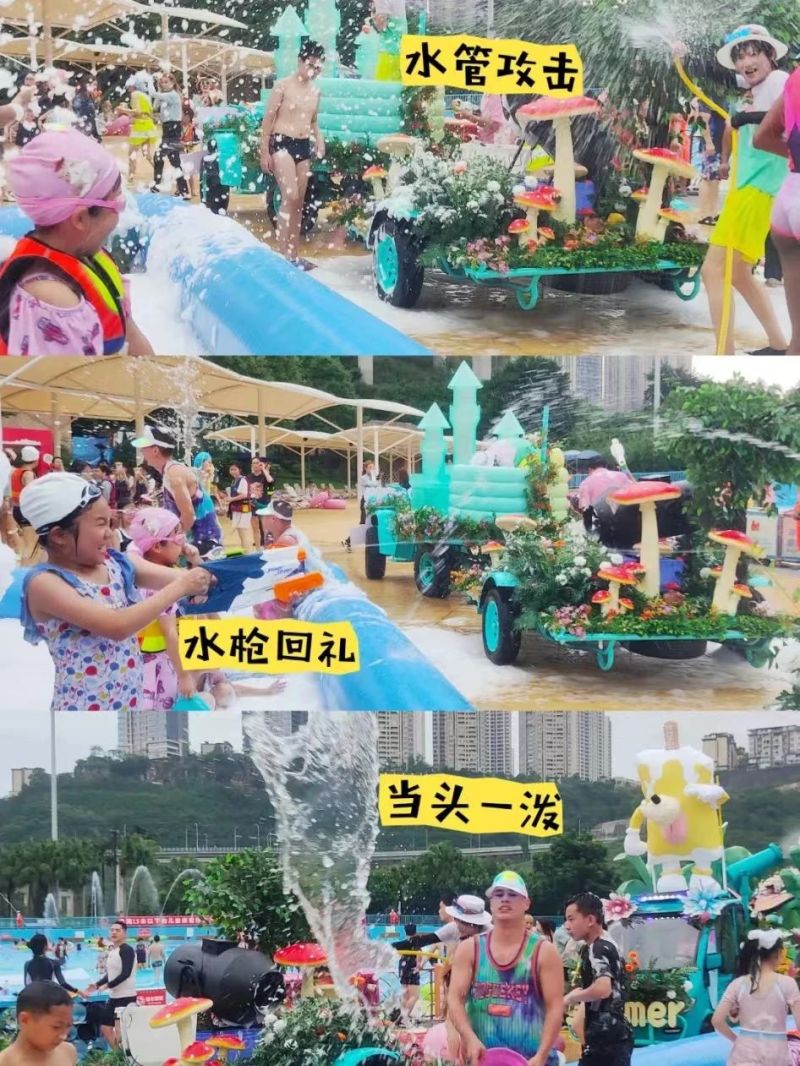 夏威夷、电音、玛雅、缤纷多主题方针还有自带喷水技能的花车,视觉效果和娱乐值统统拉满。