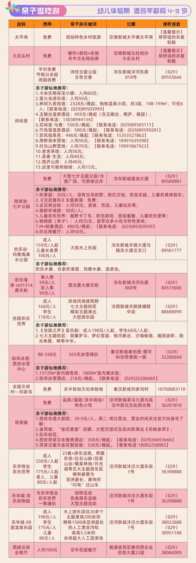 面对“神兽”们即将出笼的夏日,你的亲子游计划准备好了吗?今天,小编为大家送上一份西咸新区全年龄段亲子游地图,快来带上孩子收获一个美丽的夏天吧。