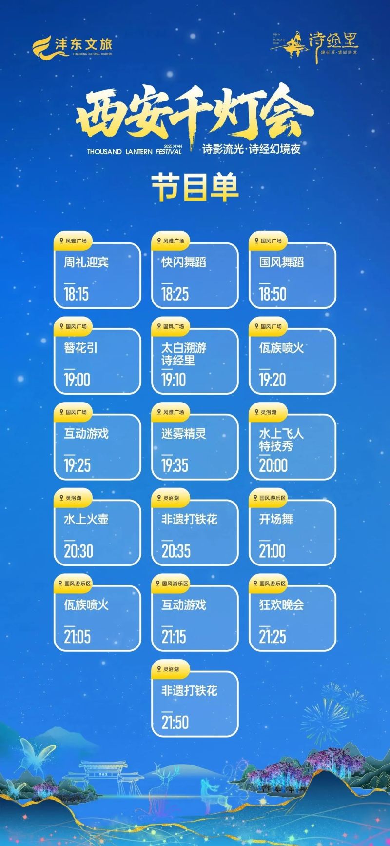 夜晚的诗经里将变成梦幻的光影世界,秘境灯光秀点亮夜空,昆虫秘境、国潮隧道、欢乐花海等主题灯组营造奇幻氛围。同时还有精彩的演艺节目,如水上火壶表演、非遗打铁花以及诗经小剧、舞蹈表演等,让游客享受难忘的夜游体验。