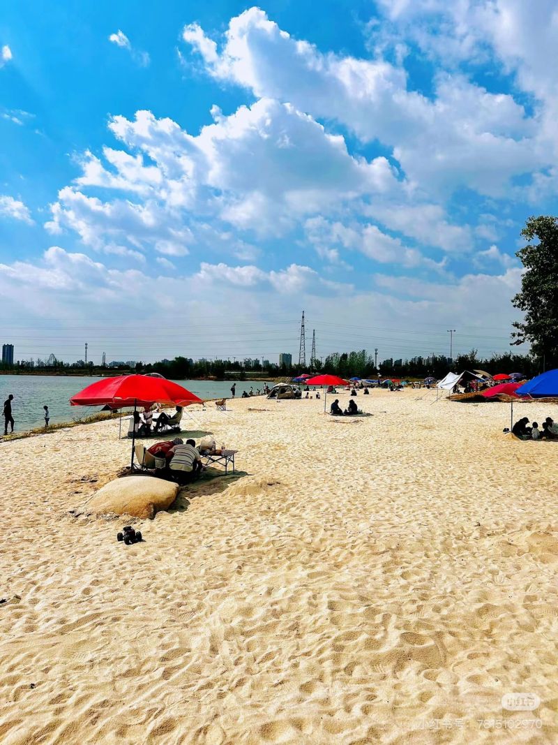 能源金贸区的沣河金湾沙滩分南北两区,沙子细腻柔软,是西安人私藏的浪漫打卡点,傍晚的“橘子海”更是出片天花板。