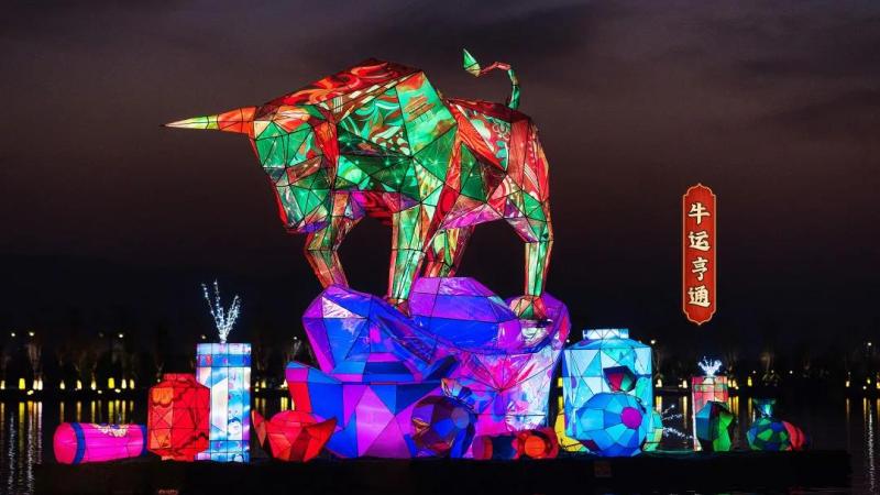 昆明池·七夕公园水上花灯会,以景区爱情文化为底蕴,以新春佳节为主题,结合传统的花灯,全面开启夜游盛宴。多彩多样的新春花灯点亮夜空,气势恢宏的水上灯组流光溢彩,也吸引了央视《新闻直播间》的关注与报道。