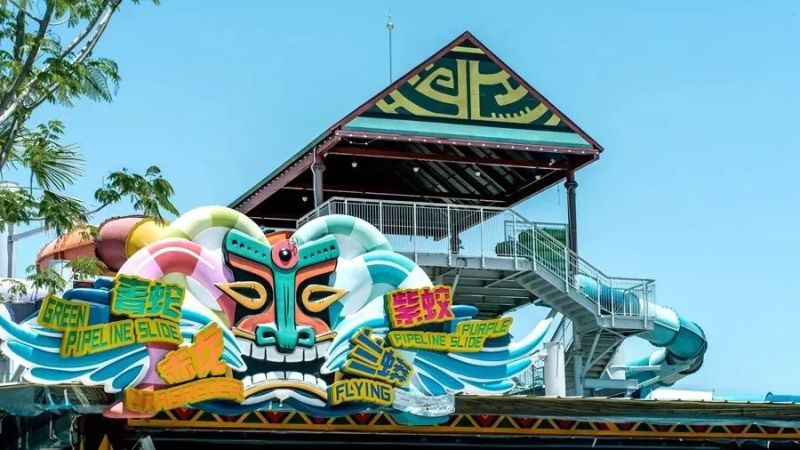 欢乐水寨融合了儿童水仗对决区和获奖滑道的儿童缩小版,可挑战各种通关项目。多条滑道家长可陪玩。炮弹飞人则通过独特的设计,打造出更强劲的速度和紧凑感。游客俯冲滑进加速的弯道,高速通过弯道中心时被高高挂壁飞驰,在2次加速度后进入开敞式滑管出口,最后坠入近3米深的水池。两个滑道上的游客各以不同姿势入水,解锁最佳落水Pose!还有双龙水上过山车,160米长的“激流河段”环神庙而过,让你在这个夏日体验超强的凉爽刺激。