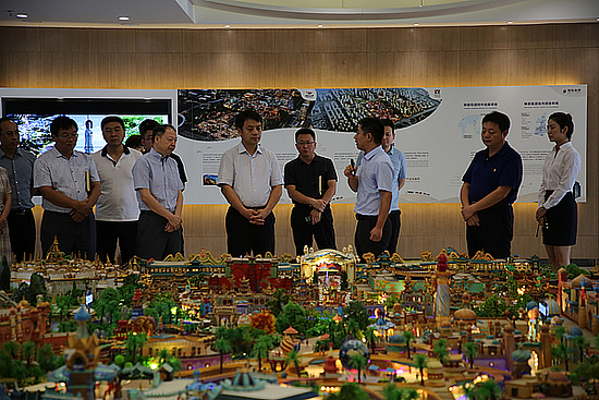 在丝路风情城规划展厅,刘宇斌同志观看了宣传片和项目沙盘,认真听取工作汇报及存在问题,并座谈交流。他要求,要像支持交大创新港一样支持丝路风情城,全力加快建设进度,处处体现“公园城”和“丝路城”理念,严格按照时间节点推进,确保2021年5月开放投运;要加快市政配套建设,多到一线了解情况,有效解决好拆迁、文物保护、项目宣传、土地供应、管理体制等问题,切实加快地铁、公交等方面建设。