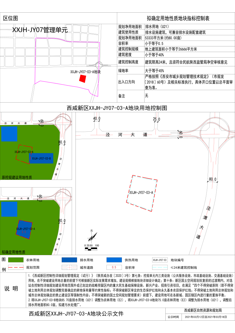 为发挥西咸新区作为国家创新城市发展方式试验区的综合功能,加快建设现代化大西安新中心,提升新区治理能力与规划精细化管理水平,西咸新区管委会组织编制了XXJH-JY07-03-A地块用地控制图。为了进一步增强规划编制的可行性和公共参与性,根据《中华人民共和国城乡规划法》的有关规定,现将XXJH-JY07-03-A地块用地控制图予以公示,欢迎各界各部门及广大公众积极参与此次活动,使规划更加科学合理。