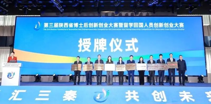 颁奖环节,大赛为新设立的秦创原创新促进中心等10家,博士后科研流动站、科研工作站、省级博士后创新基地代表授牌,2家创投机构与11个大赛优秀项目签订成果转化服务协议,4家创新创业平台签订共建合作协议。