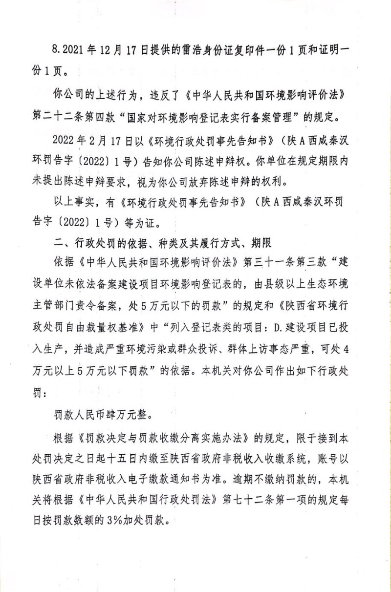中国联合网络通信有限公司咸阳市分公司环境行政处罚决定书和责令改正环境违法行为决定书
