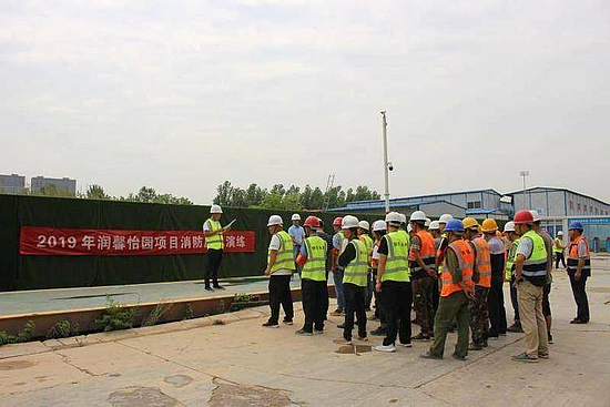 为进一步强化安全生产宣传教育,全面增强建筑行业从业人员的消防安全意识和安全生产理念, 2019年6月11日上午,润馨怡园项目组织各劳务单位开展消防应急演练活动,项目各参建单位工作人员参加,全程观摩消防演练活动。