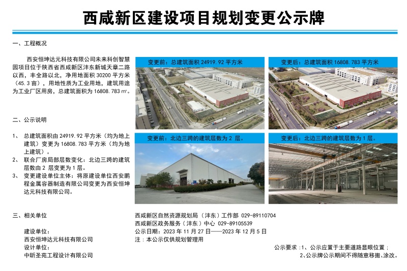 根据《西安市城乡规划条例》第四十五条,现对该项目建设工程规划许可变更方案进行公示,并征求各利害相关人意见,批前公示非最终审批结果,公示期内若相关人员对该项目变更有异议或者意见,可通过电话或书面形式提出意见或建议,书面材料中请注明真实姓名、电话、地址、并提供公示事项与其有利害关系的证明。