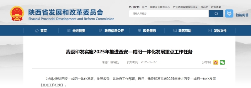 为加快推进西安-咸阳一体化发展,省发展改革委日前制定印发2025年推进西安-咸阳一体化发展重点工作任务。